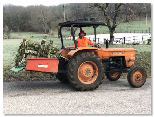 Damit wir nächsten Herbst nicht wieder das Lamento betreffend der 100’000 Eicheln anstimmen müssen, beschlossen wir elf riesige, in der Nähe des Weidezaunes stehende Eichen zu fällen. Deren Äste ragten nämlich derart weit in die Weide hinein, dass all ihr Laub und eben die 100’000 Eicheln im Gras landeten. Nachbar Olivier hat während seinen Neujahrsferien freundlicherweise die Eichen gefällt (was uns gefällt) währenddessen wir das gerüttelt Mass an Ästen entsorgten. Unsere Bandscheiben werden es ihm nächsten Herbst danken.