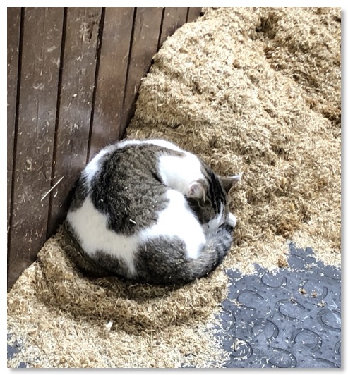MILKY seinerseits verschläft die grauen, kalt-nassen Tage auf der Einstreu (Flachs) in der Box von SNAP.