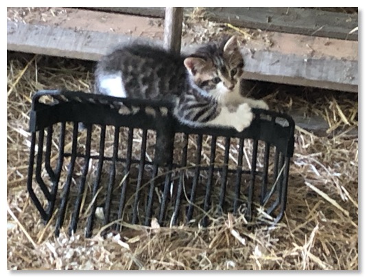 Weil die diesjährigen Heuballen in Produktion sind, mussten wir die alten wo CANDY mit ihren Kleinen hauste, entsorgen. Aus diesem Grund haben wir für die Katzen in den letzten Tage ein. Neues Gehege draussen im Wald vor dem Heuzelt errichtet. Schön im Schatten und mit einem Haus aus ihren heissgeliebten Paletten. Nun tummeln sie sich tagsüber in diesem "Robinsonspielplatz".