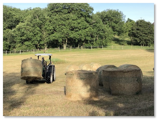 Das aktuelle stabile Hoch über Frankreich hat uns eine "Heuet" ganz ohne Stress beschert. Im Vergleich zu den letzten Jahren konnten wir dieses Jahr sehr früh heuen, was die Vorteile hat, dass die Stängel noch nicht verdorrt sind, das Gras auf den abgemähten Weiden wieder nachwächst (sofern wir nochmals etwas Regen bekommen) und das Heu eines frühen Schnitts für die Pferde besser ist.